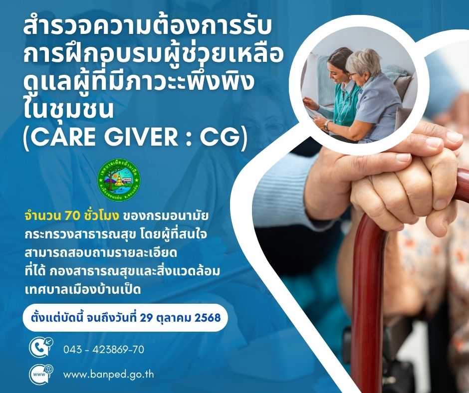 สำรวจความต้องการรับการฝึกอบรมผู้ช่วยเหลือดูแลผู้ที่มีภาวะพึ่งพิง (Care Giver : CG) จำนวน 70 ชั่วโมง ของกรมอนามัย กระทรวงสาธารณสุข