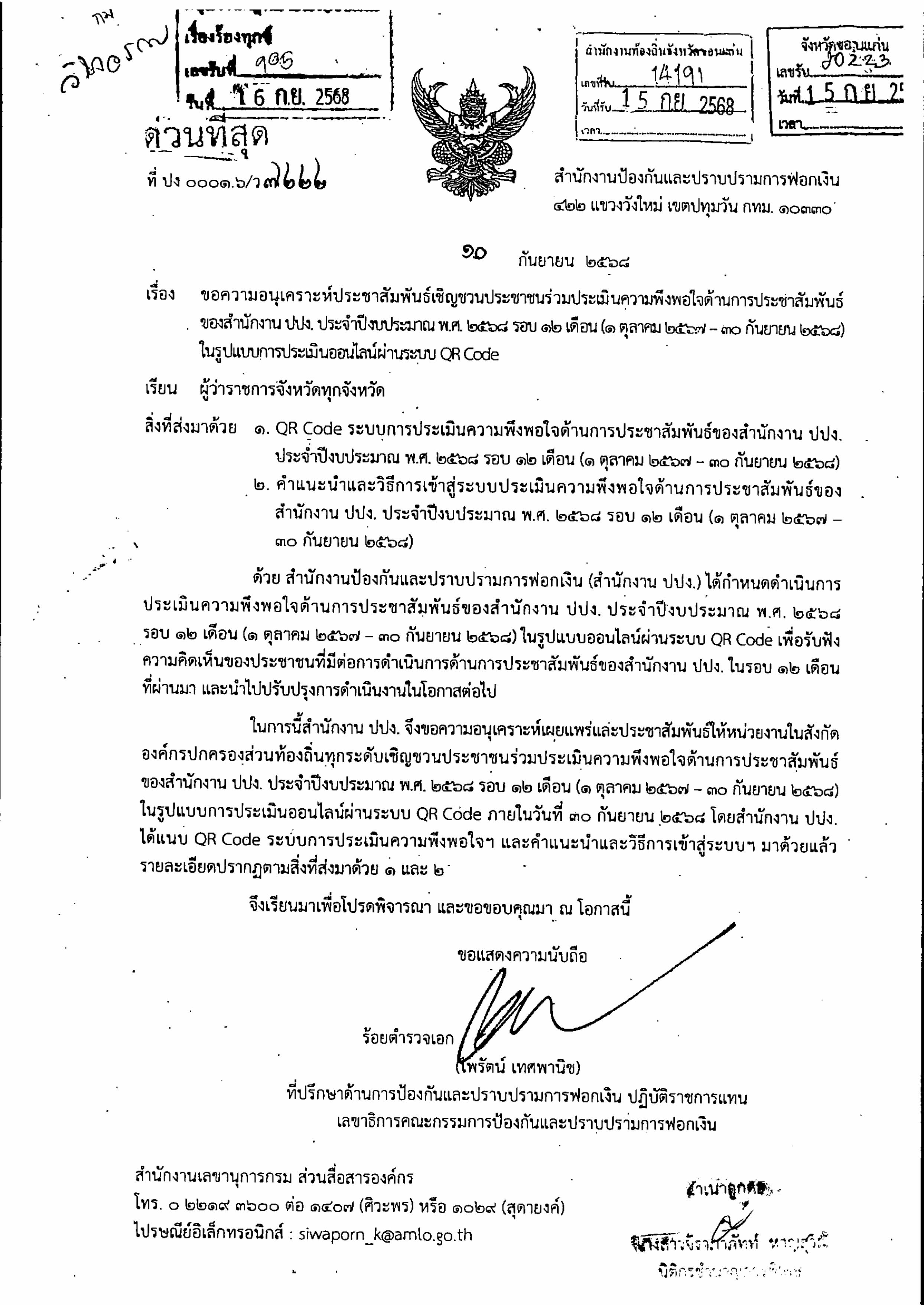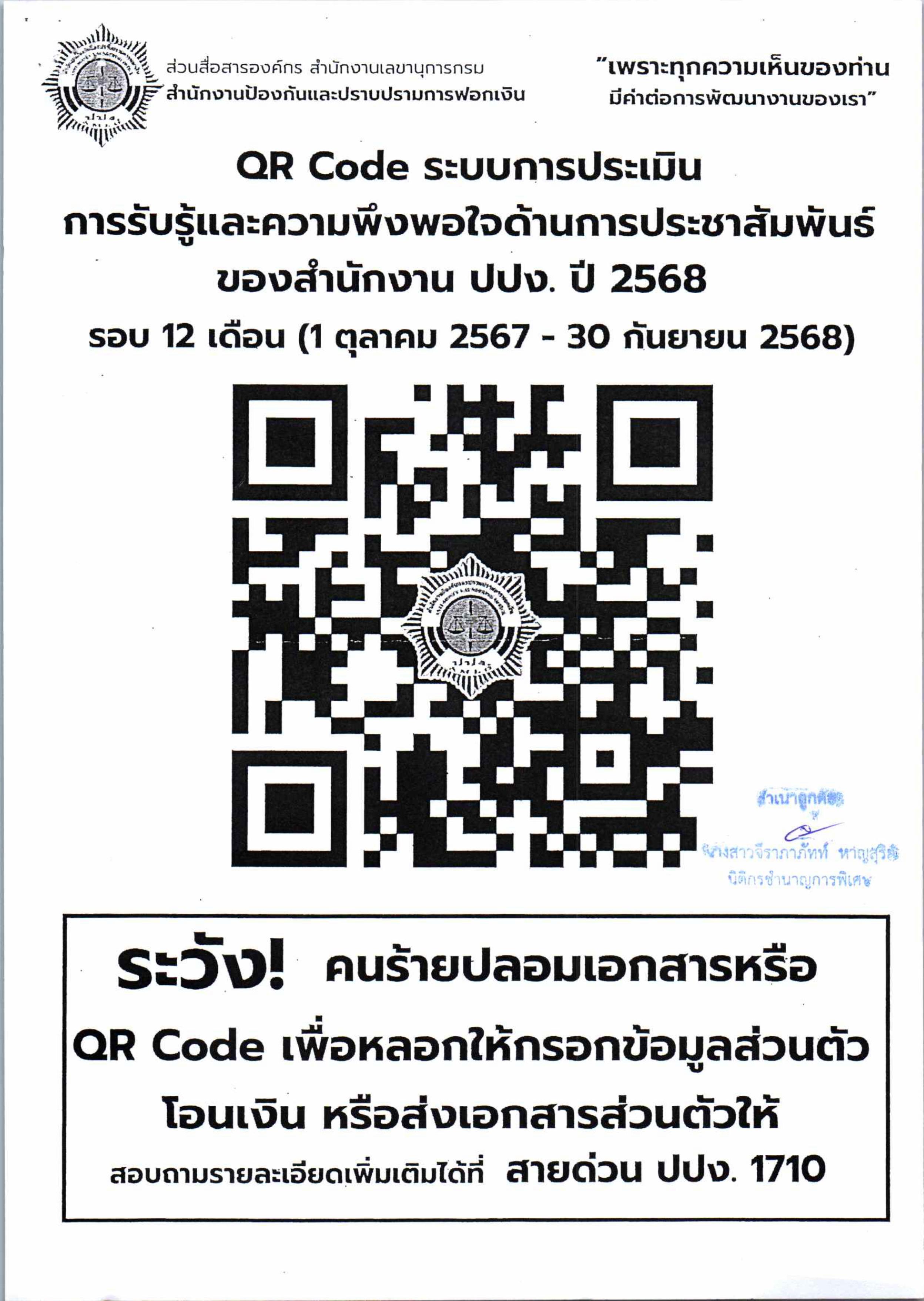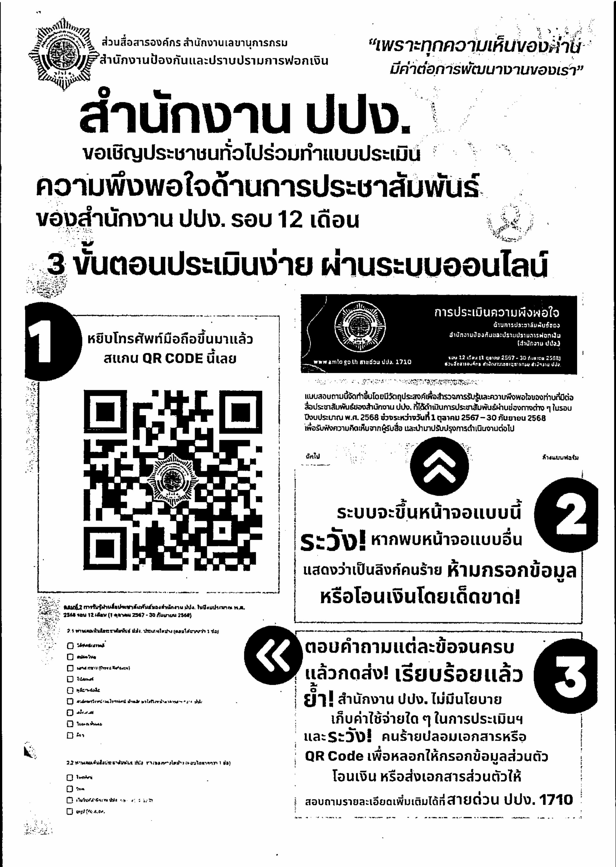 เชิญชวนประชาชนร่วมประเมินความพึงพอใจด้านการประชาสัมพันธ์ของสำนักงาน ปปง.ประจำปีงบประมาณ พ.ศ.2568 รอบ 12 เดือน