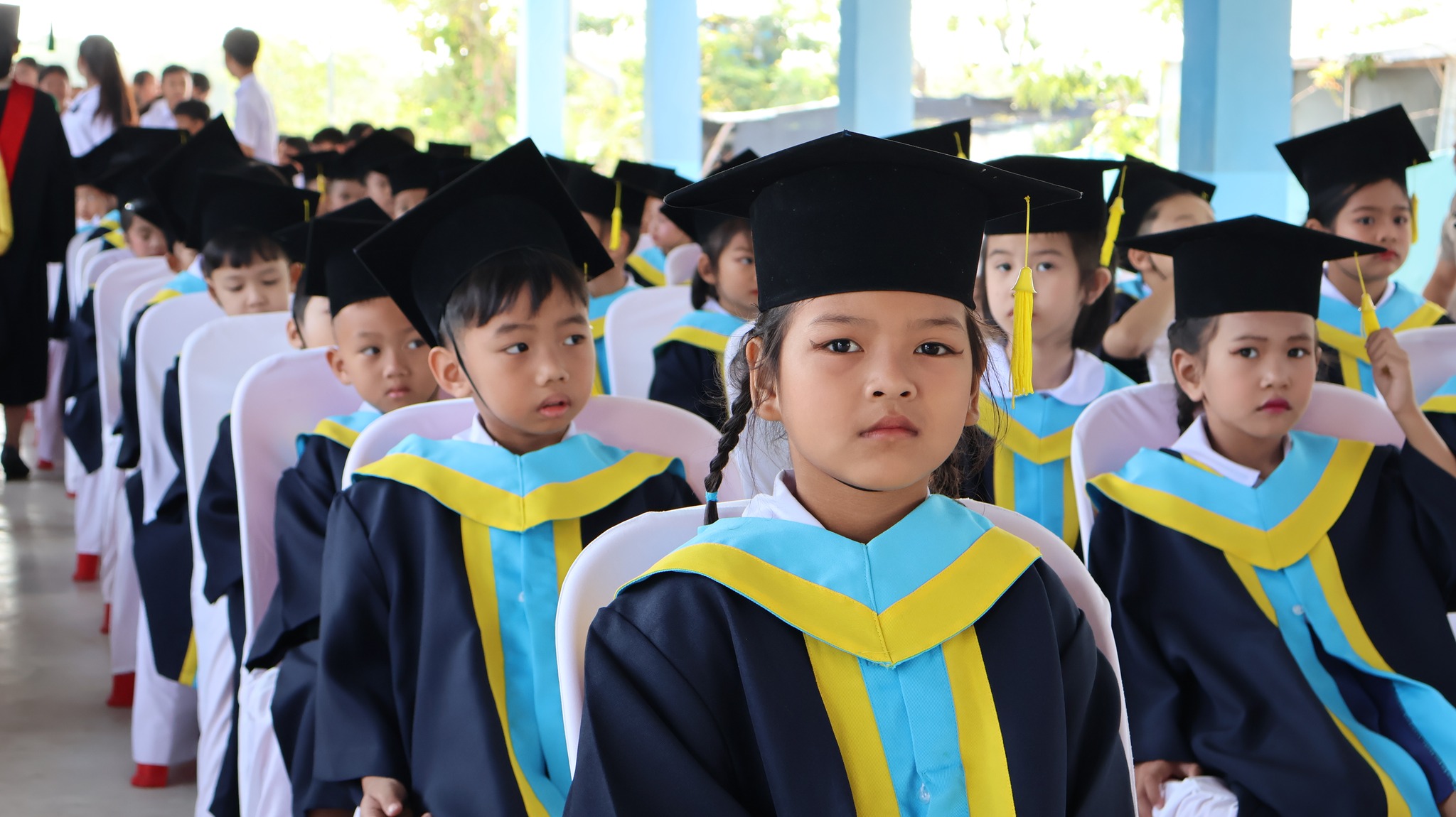 ต่อกัน และแสดงความยินดีแก่นักเรียนที่สำเร็จการศึกษา