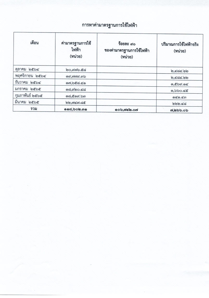 การประหยัดพลังงานไฟฟ้าของเทศบาลตำบลบ้านเป็ด (ตุลาคม พ.ศ.2564 ถึง มีนาคม พ.ศ.2565)