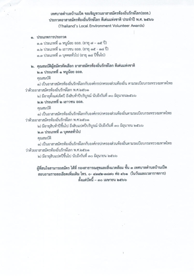 เทศบาลตำบลบ้านเป็ด ขอเชิญชวนอาสาสมัครท้องถิ่นรักษ์โลก (อถล.) ประกวดอาสาสมัครท้องถิ่นรักษ์โลก ดีเด่นแห่งชาติ ประจำปี พ.ศ.2566