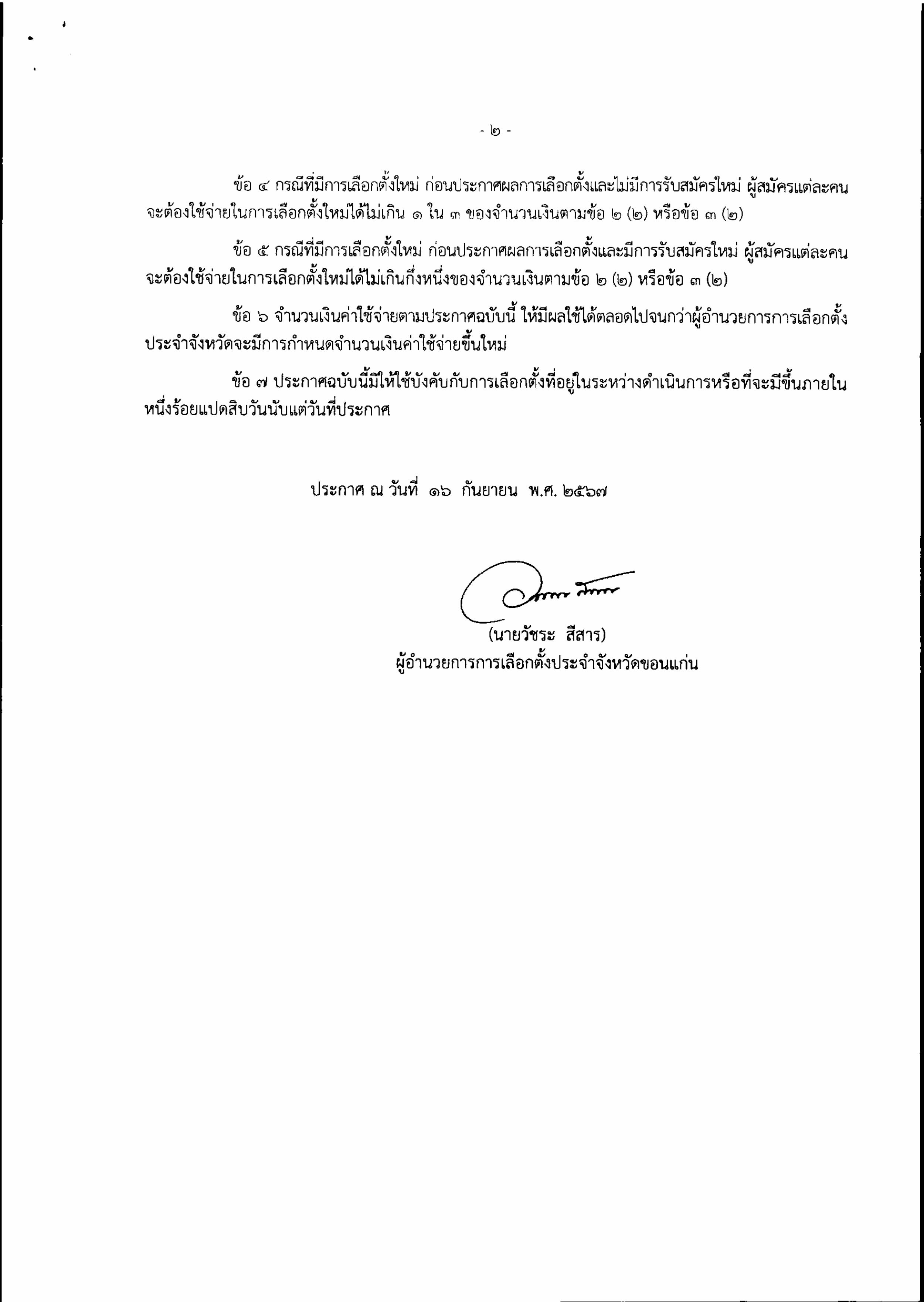 ประกาศผู้อำนวยการการเลือกตั้งประจำจังหวัดขอนแก่น เรื่อง กำหนดเงินค่าใช้จ่ายในการเลือกตั้งของผู้สมัครรับเลือกตั้งเป็นนายกเทศมนตรีตำบลและสมาชิกสภาเทศบาลตำบลในจังหวัดขอนแก่น