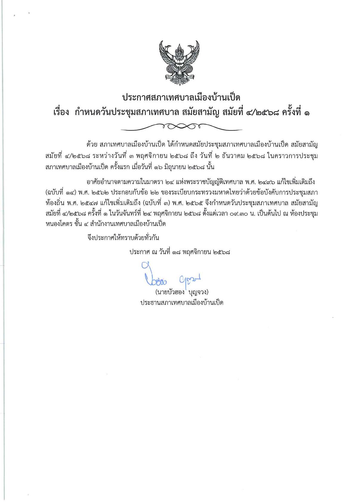 ประกาศสภาเทศบาลเมืองบ้านเป็ด