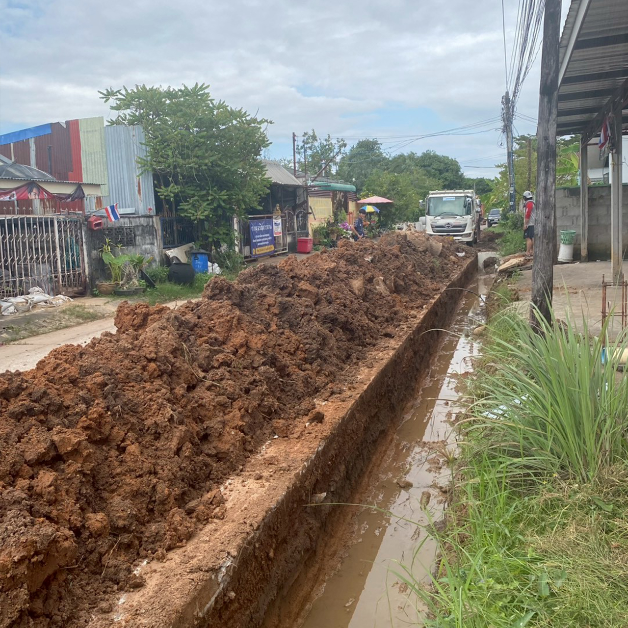 โครงการก่อสร้างวางท่อระบายน้ำพร้อมบ่อพักและรางวีคอนกรีตเสริมเหล็ก