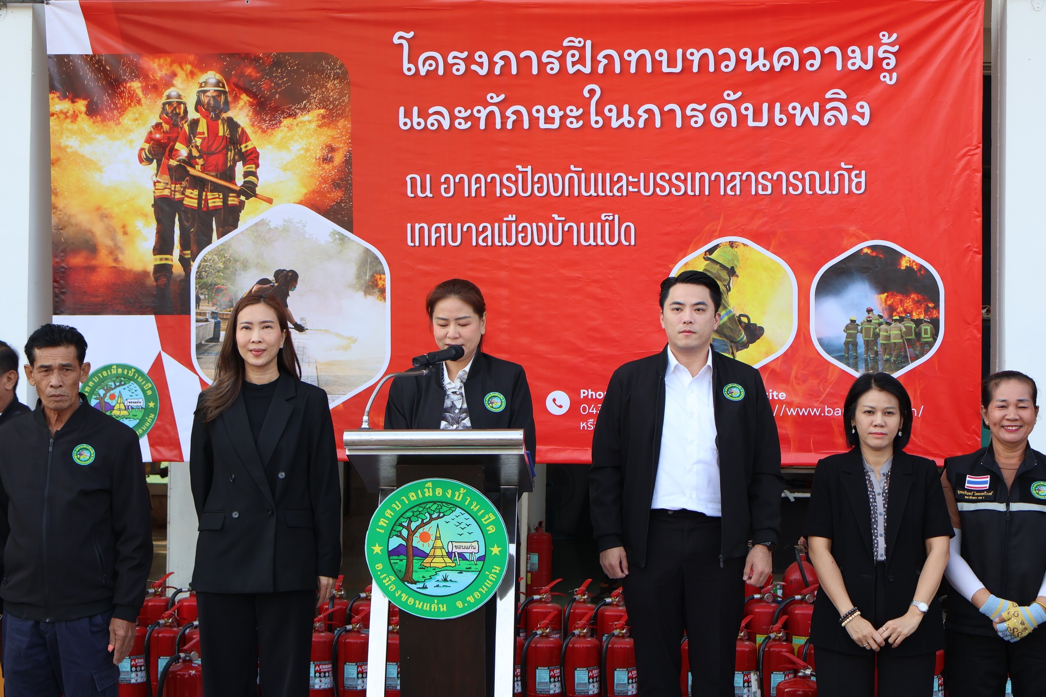 วันที่ 9 ธันวาคม 2568 เวลา 09.00 น. นางสาวปิยวรรณ จิตตะมัย นายกเทศมนตรีเมืองบ้านเป็ด เป็นประธานในพิธีเปิด “โครงการฝึกทบทวนความรู้และทักษะในการดับเพลิง (ครั้งที่ 1) ประจำปี 2569” ซึ่งจัดขึ้นเพื่อเพิ่มพูนความรู้ ความเข้าใจ และความพร้อมของพนักงานดับเพลิงในการปฏิบัติหน้าที่ ทั้งด้านทฤษฎีและปฏิบัติ โดยการอบรมครั้งนี้มุ่งเน้นให้เจ้าหน้าที่สามารถรับมือสถานการณ์ฉุกเฉินได้อย่างถูกต้อง รวดเร็ว และมีประสิทธิภาพ รวมถึงส่งเสริมการทำงานเป็นทีม และการใช้เครื่องมืออุปกรณ์ดับเพลิงอย่างเหมาะสม เพื่อพัฒนาศักยภาพของบุคลากรให้มีมาตรฐานและความพร้อมสูงสุดในการให้บริการประชาชน ณ อาคารป้องกันและบรรเทาสาธารณภัย เทศบาลเมืองบ้านเป็ด