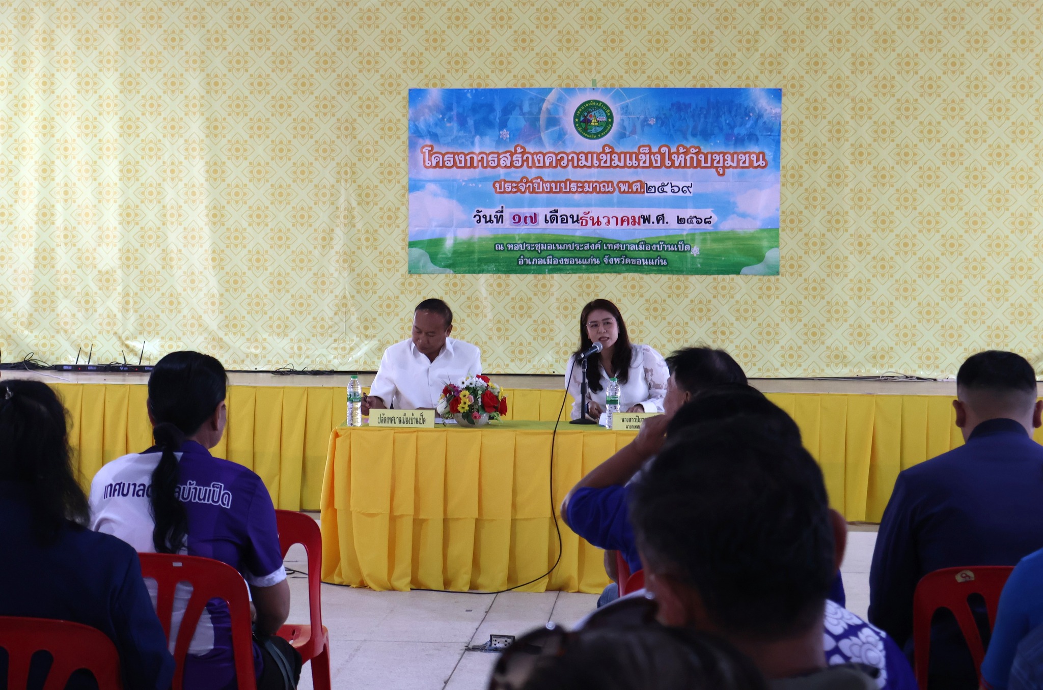 วันที่ 17 ธันวาคม 2568 เวลา 08.30 น. นางสาวปิยวรรณ จิตตะมัย นายกเทศมนตรีเมืองบ้านเป็ด เป็นประธานในพิธีเปิดโครงการสร้างความเข้มแข็งให้กับชุมชน ภายใต้กิจกรรมทางวิชาการหรือเชิงปฏิบัติการ