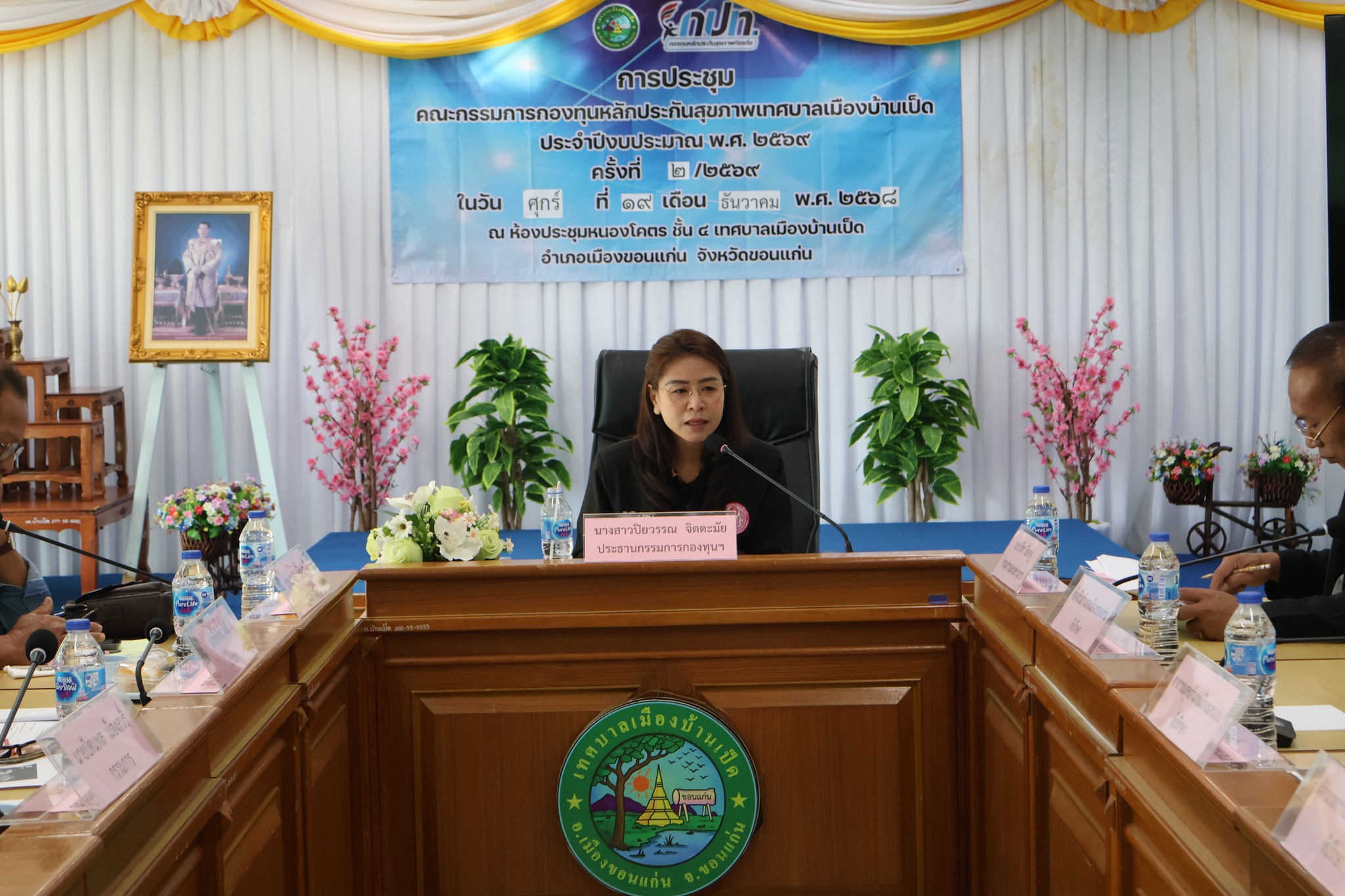 วันที่ 19 ธันวาคม 2568 เวลา 09.00 น นางสาวปิยวรรณ จิตตะมัย นายกเทศมนตรีเมืองบ้านเป็ด เป็นประธานประชุมคณะกรรมการกองทุนหลักประกันสุขภาพ เทศบาลเมืองบ้านเป็ด ประจำปีงบประมาณ พ.ศ.2569 ครั้งที่ 2/2569 ณ ห้องประชุมหนองโคตร เทศบาลเมืองบ้านเป็ด