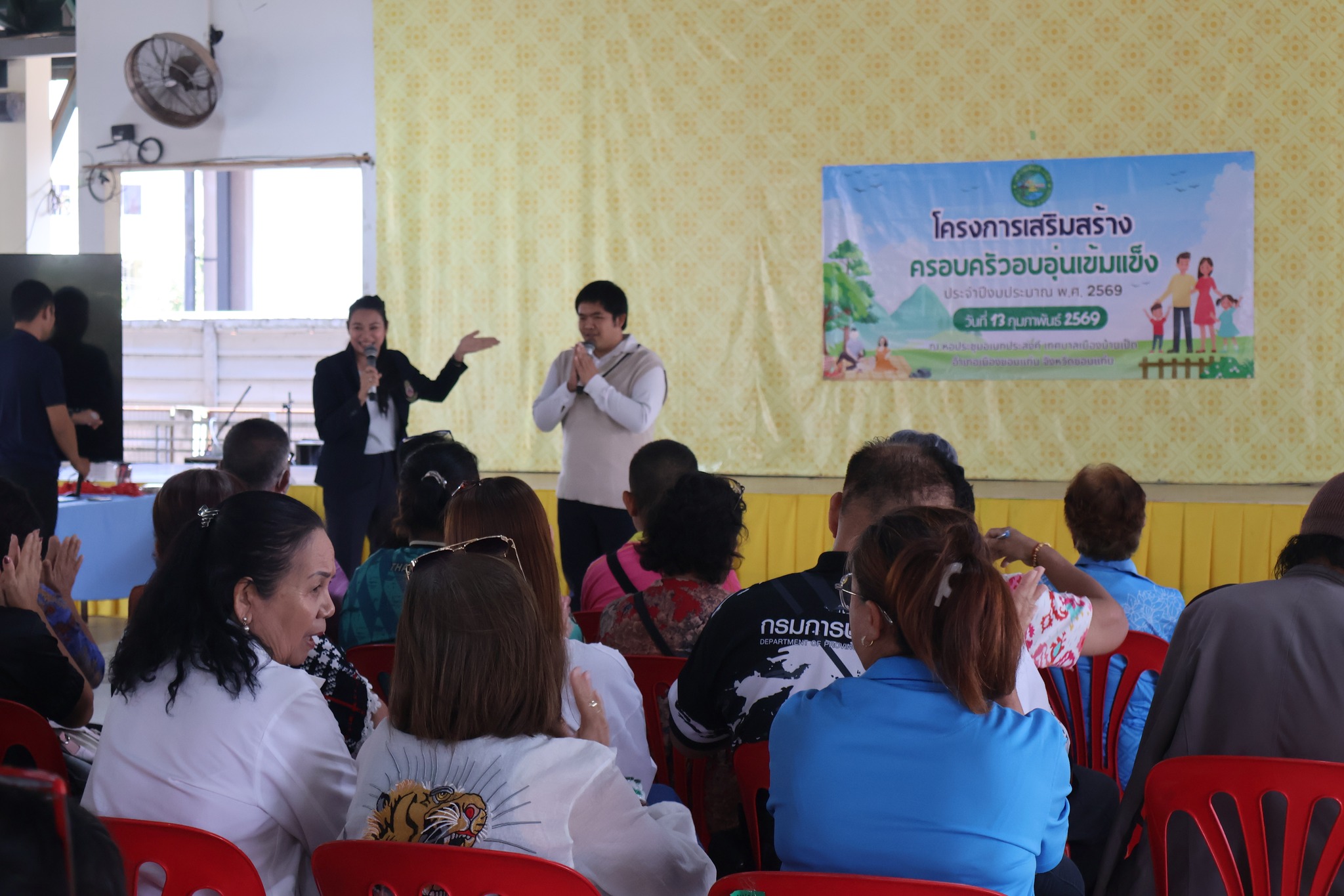 วันที่ 13 กุมภาพันธ์ 2569 เวลา 09.00 น. นางสาวปิยวรรณ จิตตะมัย นายกเทศมนตรีเมืองบ้านเป็ด พร้อมด้วยคณะผู้บริหาร สมาชิกสภาเทศบาล และหัวหน้าส่วนราชการ เข้าร่วมโครงการเสริมสร้างครอบครัวอบอุ่นเข้มแข็ง ประจำปีงบประมาณ พ.ศ.2569 เพื่อเป็นการสร้างความรักความเข้าใจและความสัมพันธ์ที่ดีระหว่างสมาชิกในครอบครัว ณ หอประชุมอเนกประสงค์ เทศบาลเมืองบ้านเป็ด