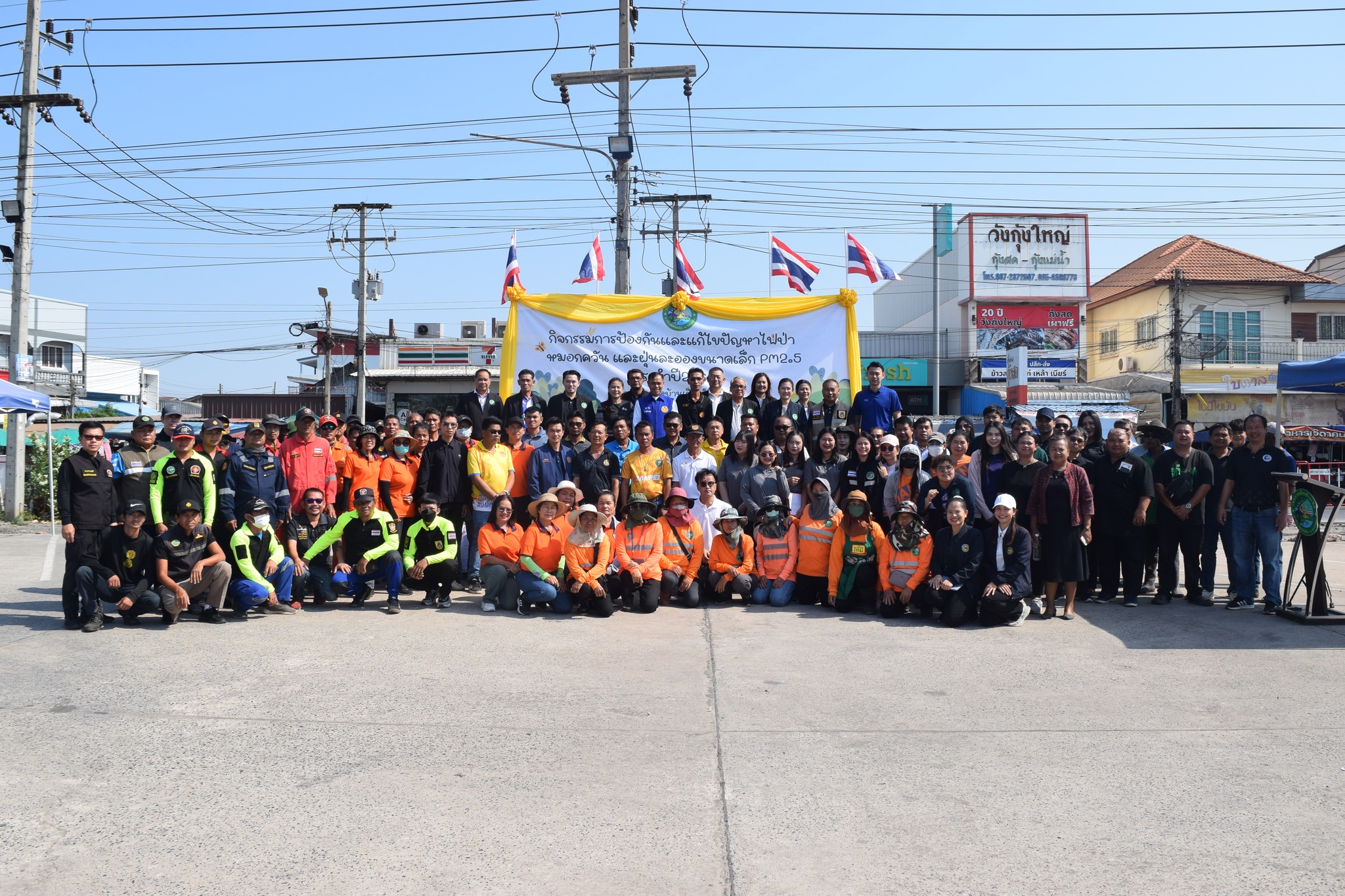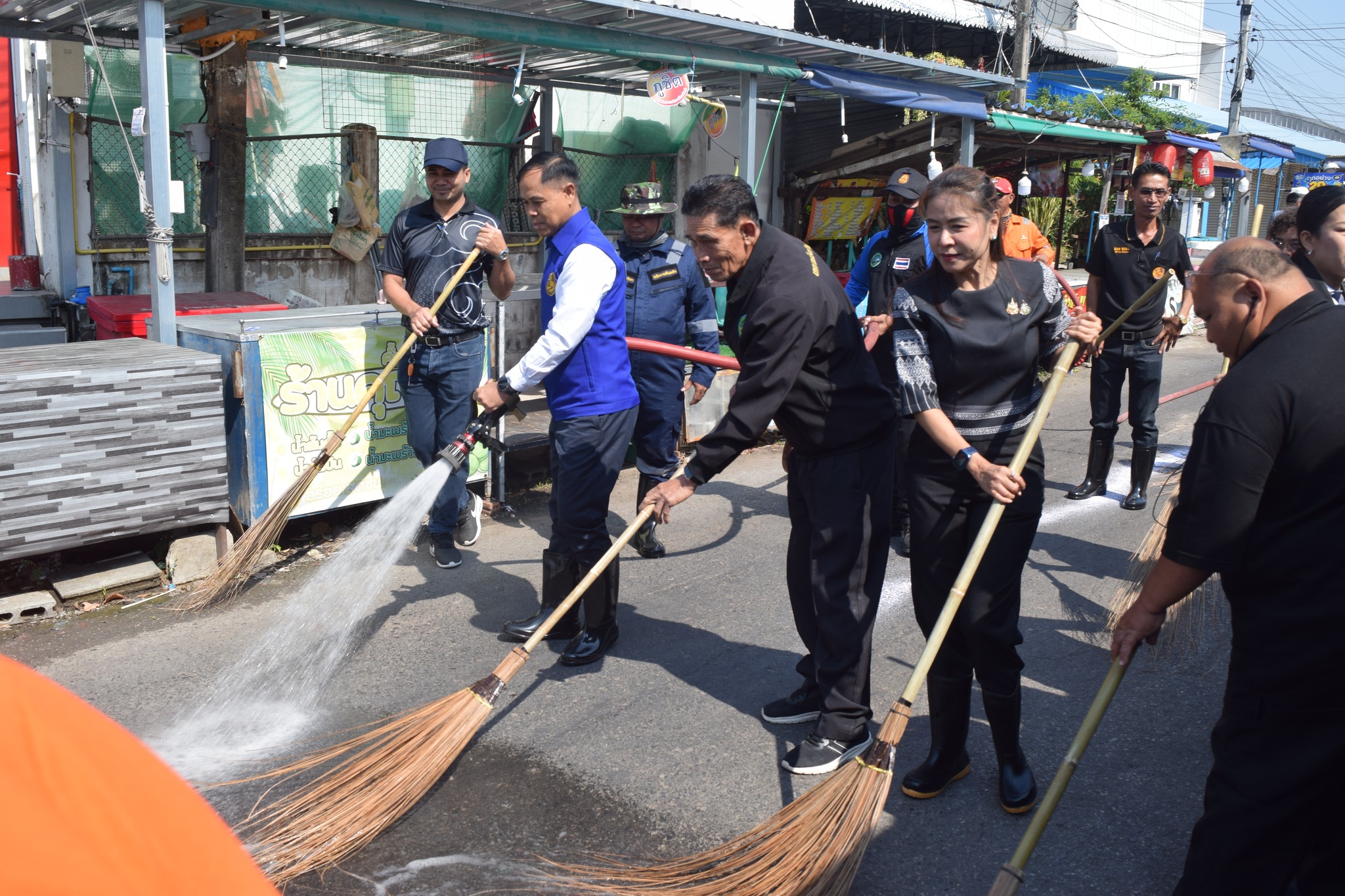 กล่าวเปิดโครงการ พร้อมด้วยนายกเทศมนตรี คณะผู้บริหาร หัวหน้าส่วนราชการ เจ้าหน้าที่เทศบาล กำนัน และผู้ใหญ่บ้าน เข้าร่วมกิจกรรมล้างทำความสะอาดถนน เพื่อลดปัญหาฝุ่นละอองและปรับปรุงสภาพแวดล้อม
